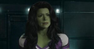 Questa è la serie di She-Hulk, e la sua vita ha iniziato a crollare proprio quando ha imparato a essere sia Jen che She-Hulk. Dopo che il gruppo d’odio online Intelligencia ha provocato la furia di She-Hulk, facendo finire la mite avvocatessa supereroina Jennifer Walters (Tatiana Maslany) sotto la custodia del Dipartimento di Controllo dei Danni, “Di chi è questo show?” si apre con Jen rilasciata dalla prigione. È costretta a indossare un inibitore di potenza come il suo ex cliente, il riformato Emil Blonsky/Abominio (Tim Roth), che le impedisce di trasformarsi.