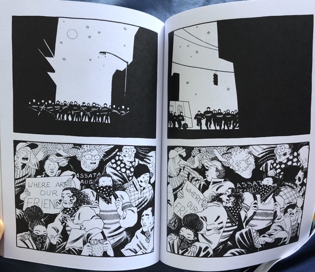 Il tratto della Davis è molto essenziale ed è un elemento fondamentale per trasmettere il messaggio dell’autrice. Le pagine si fanno più nere nelle scene più angoscianti e drammatiche, come il racconto della repressione di una manifestazione da parte della polizia. In altri casi, il colore quasi scompare per lasciare spazio a un bianco quasi abbagliante in alcune tavole che colpiscono i lettori dritti al cuore.
