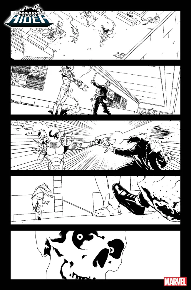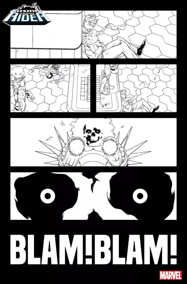 L’artista Valerio Giangiordano ha realizzato la copertina del primo numero, visibile qui sopra. Nel frattempo, ecco una galleria di pagine interne di Cosmic Ghost Rider #1 di Cabal: