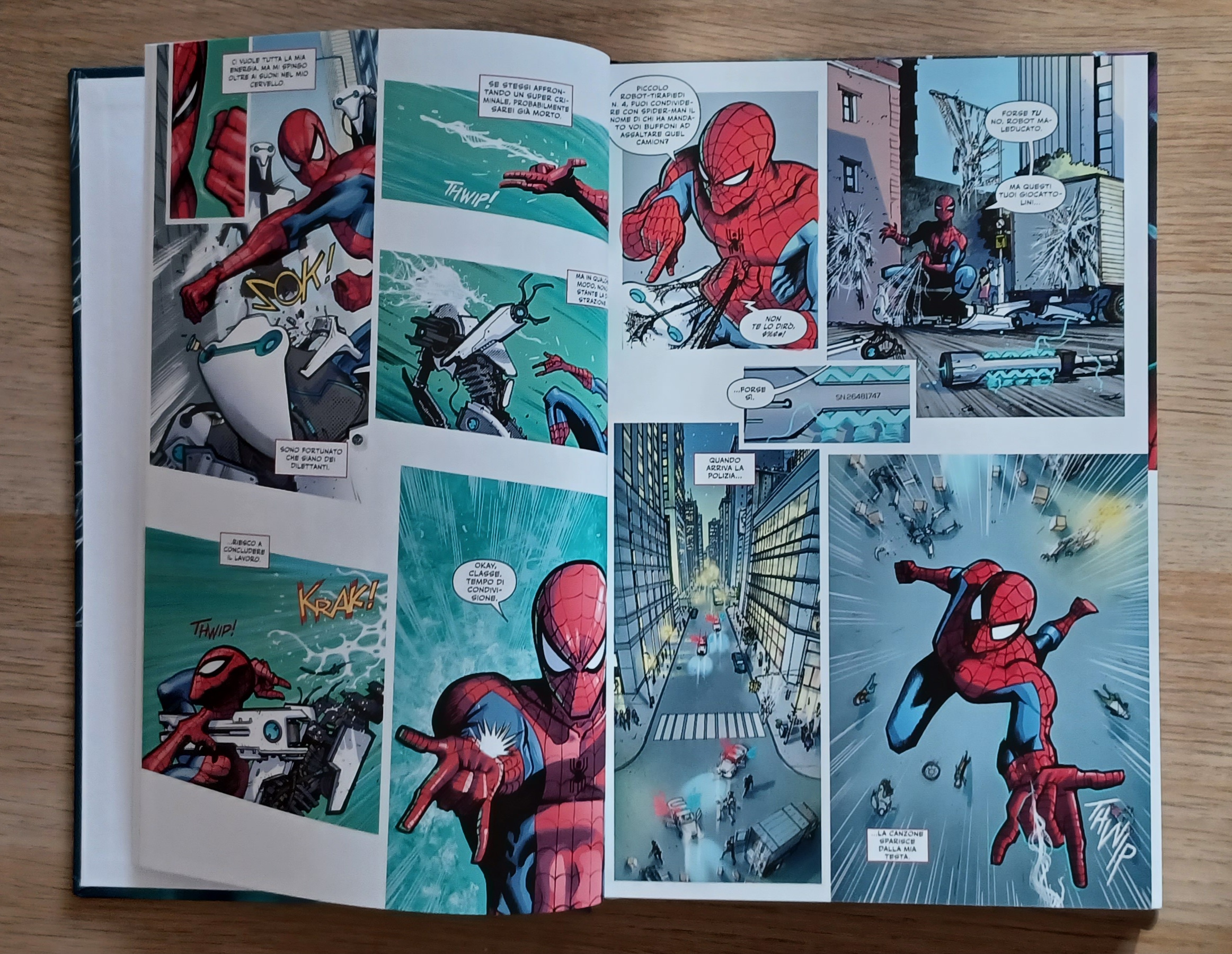 La storia di questo volume si appoggia molto sul personaggio principale e sulla sua narrazione, anche più del solito. Con così tanti cambiamenti all’inizio, Peter si ritrova a fare molti monologhi, e ciò aiuta il lettore ad entrare subito nelle atmosfere che il volume vuole trasmettere. Ciò che aiuta molto a costruire queste atmosfere è anche il tono opprimente che proviene da ogni luogo e da ogni personaggio, inoltre Ahmed non si limita a cancellare la vita di Peter Parker, ma fa si che coloro che ama siano arrabbiati e maligni nei suoi confronti. La tensione continua a salire e aumenta l’isolamento che egli prova. Le didascalie sono di una semplicità brillante, descrivono ciò che sta accadendo, aggiungendo un po’ di enfasi quando necessario.