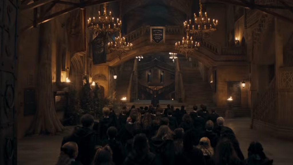 Sebbene HBO mantenga il riserbo sugli esterni del castello, abbiamo visto un’anteprima dell’Atrio d’Ingresso. Le scalinate massicce e l’architettura gotica promettono una Hogwarts più vasta e labirintica che mai.