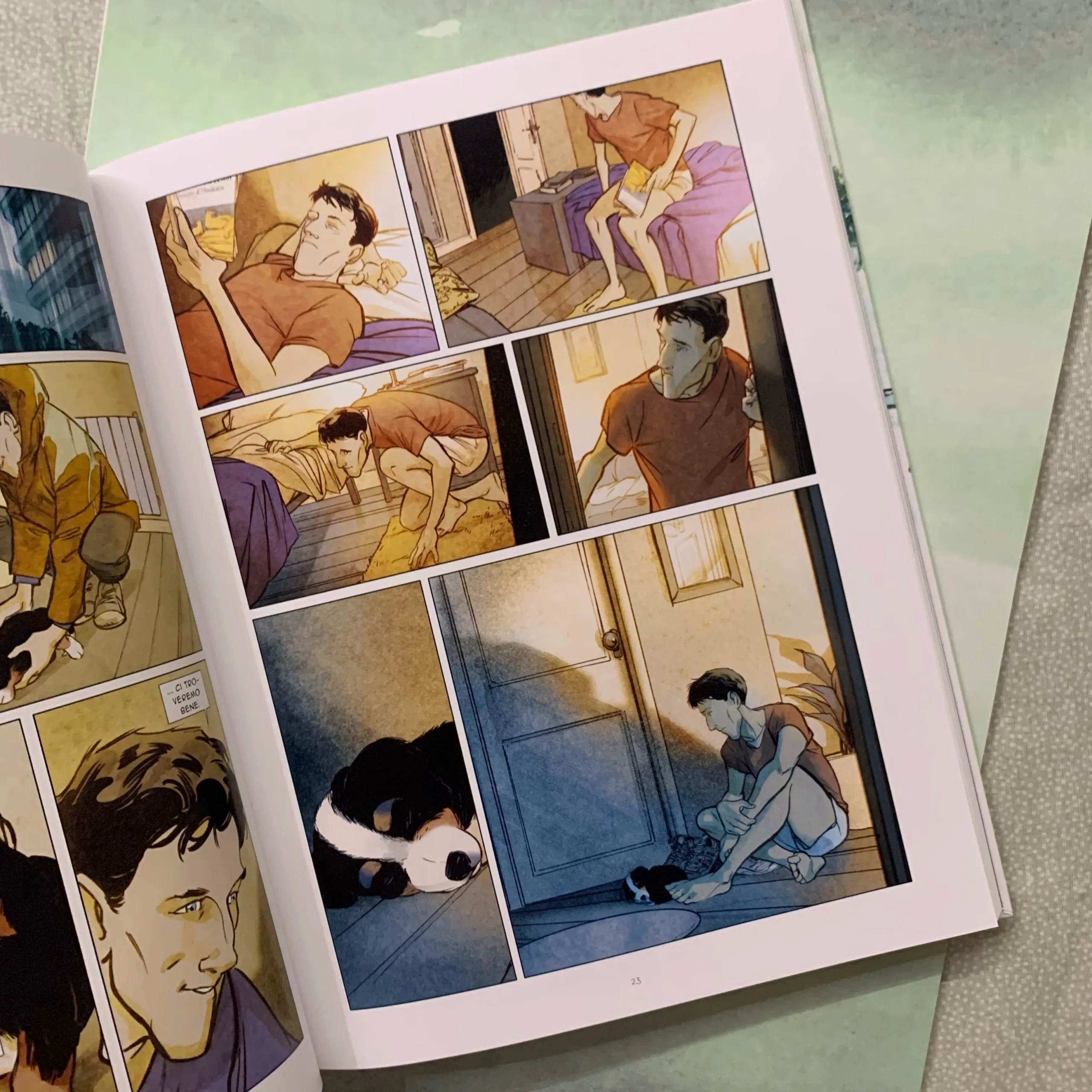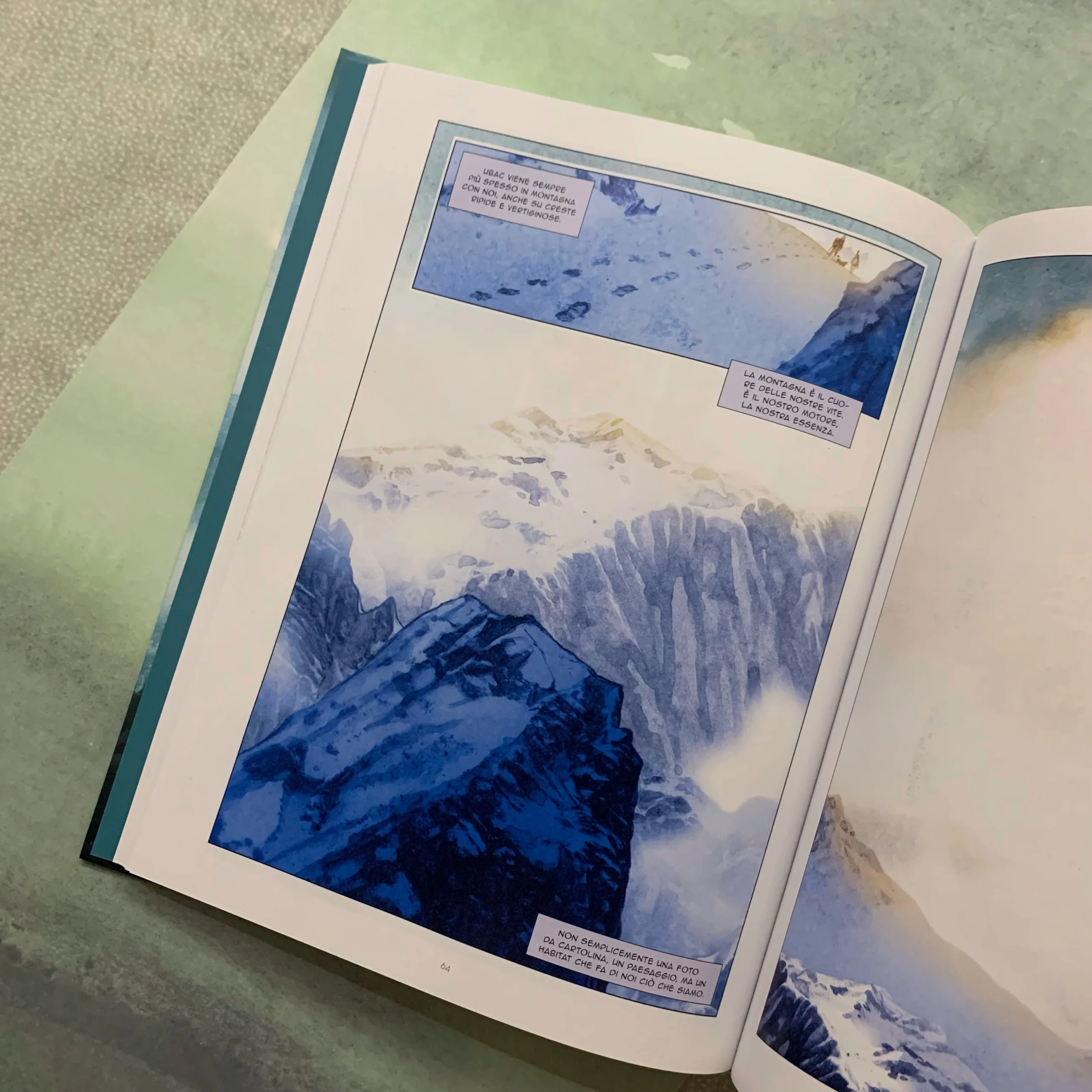 Allo stesso tempo il lettore si trova travolto in questa storia grazie ai disegni di Munuera così poetici, dai colori pastello. Soprattutto i paesaggi sembrano proprio trasportarti in quel posto, in quella realtà così vicina e lontana della montagna e della natura che spesso snobbiamo quando invece può regalarci serenità. Ed è proprio la serenità del cuore che Cedric riesce a trovare da quando conosce Ubac. Gli incontri che grazie al suo cucciolo gli sconvolgono la vita. Lo rendono felice, sereno. La sua vita non è sempre facile ma lo soddisfano. Gli regalano una famiglia non convenzionale, ma piena di sentimenti che traspaiono e colpiscono il cuore del lettore.