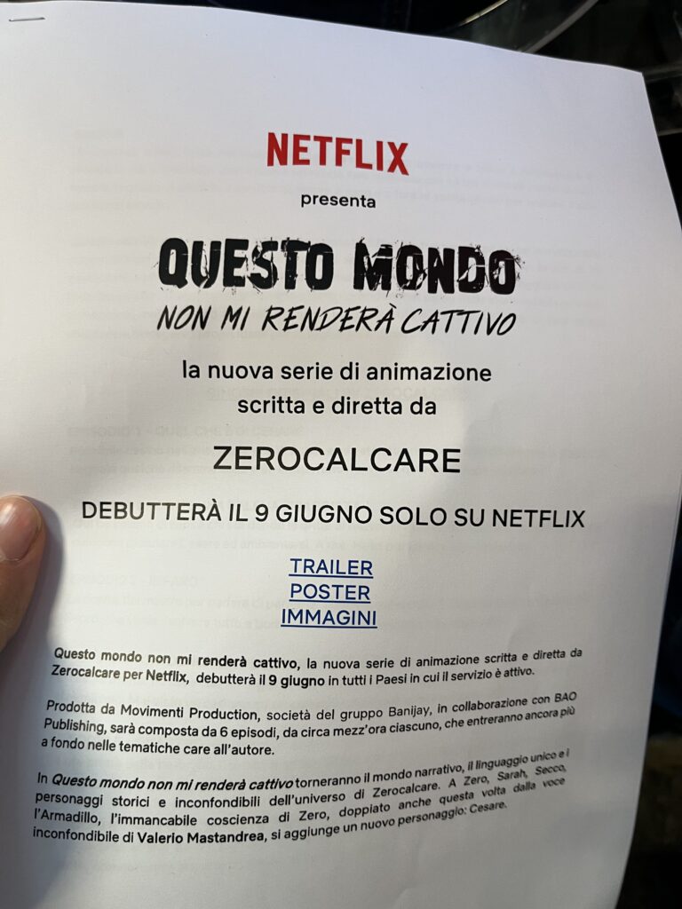 In occasione dell’uscita di Questo mondo non mi renderà cattivo, grazie a gli amici di Netflix, abbiamo avuto l’occasione di incontrare Zerocalcare e altre personalità di spicco, coinvolte nella realizzazione della serie, tra cui Michele Foschini, direttore editoriale di Bao Publishing. La lunga intervista condotta dalla nota scrittrice e giornalista, Marianna Aprile, ci ha fornito molti spunti di approfondimento che siamo entusiasti di raccontarvi.