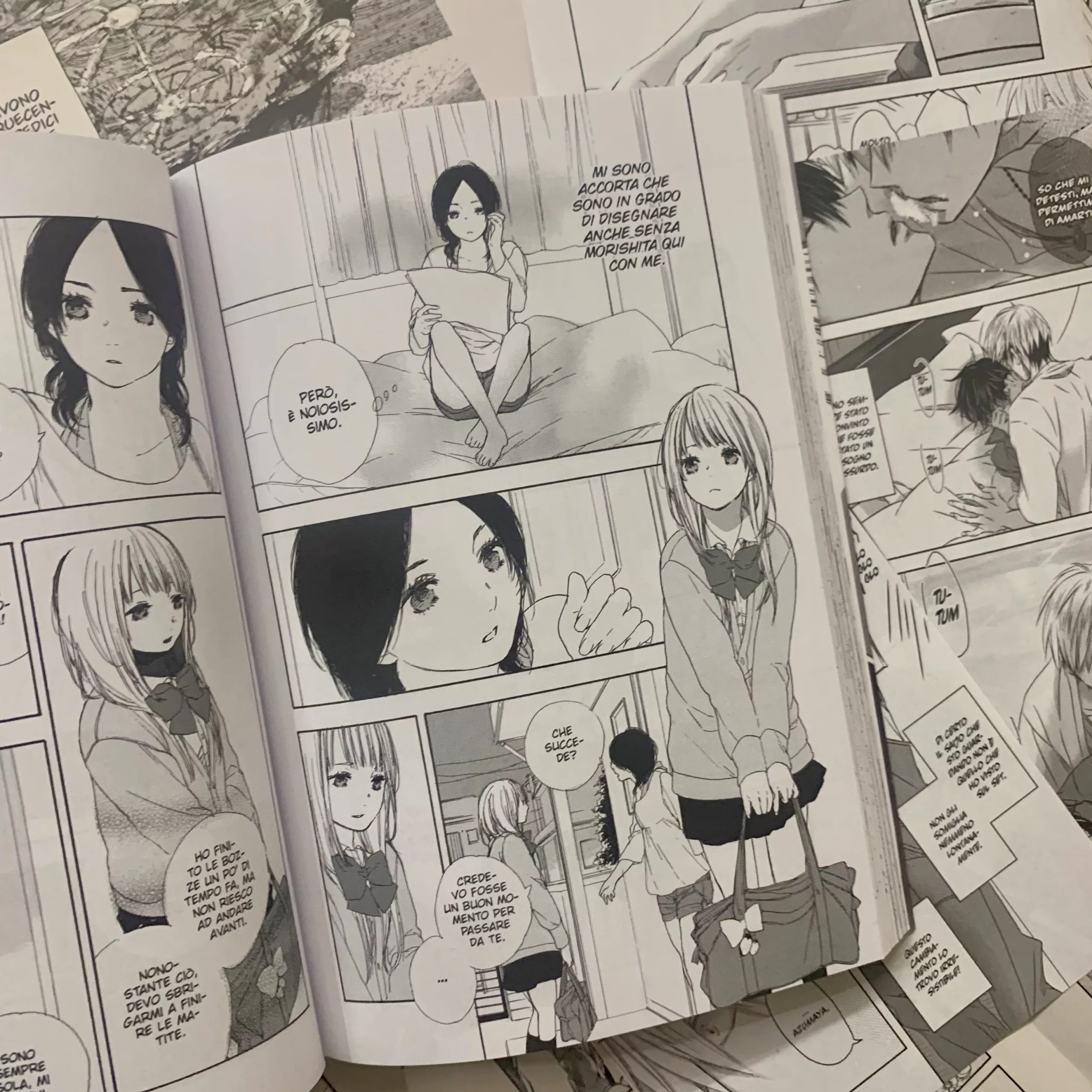 Il rapporto tra le due protagoniste di Insegnami a fare un manga è strano, nato in modo particolare, a suo modo difficile da definire. Nel corso della storia si delineano nuovi elementi, dei piccoli cambiamenti per entrambe, riflessioni su loro stesse e il rapporto con l’altra; il loro stare insieme e condividere momenti spensierati ma anche di lavoro sui manga. Nel corso del primo volume di Insegnami a fare un manga troveremo nuovi elementi che mostreranno il cambiamento di entrambe le protagoniste, che continuerà nel secondo volume. Rispettare le scadenze, disegnare qualcosa di convincente per se stesse oltre che per i lettori ma sopratutto le relazioni umane, tra persone che vivono di manga e altre che non sanno nulla di questo mondo. E continua ad esserci il dubbio, la difficoltà di definire la relazione tra Kawaguchi e Morishita. Sarà amore o cosa è? Pensando all’altra opera della sensei Hirao, Se la mia idol preferita arrivasse al Budokan morirei, troviamo un po’ meno frustrazione, con le due protagoniste che hanno un rapporto “normale” seppur indefinito. Sarà da vedere se potrà concretizzarsi e in che modo. I loro sentimenti reciproci sono raccontanti come qualcosa di adolescenziale, che le due ragazze provano momentaneamente, ma che crescendo scomparirà, ricalcando trope legati al genere Yuri oltre che della società giapponese e al suo modo di intendere (erroneamente) le relazioni omosessuali.