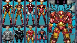 Ecco una galleria di copertine che presentano effettivamente un intero arsenale di armature di Iron Man a disposizione di Tony Stark: