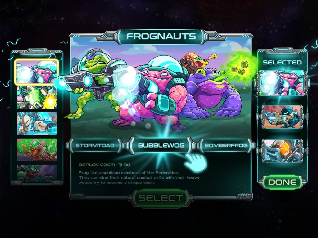 Ogni nuova missione ci porta in un pianeta diverso, sotto scacco da creature ostili che non ci penseranno due volte a farci a fettine. Noi abbiamo in mano il potere per riuscire a salvare la popolazione. Possiamo schierare diverse unità, inizialmente saranno poche, mano a mano che andiamo avanti con la storia avremo sempre a disposizione maggiori forze da mandare contro le minacce che ci si pareranno davanti.