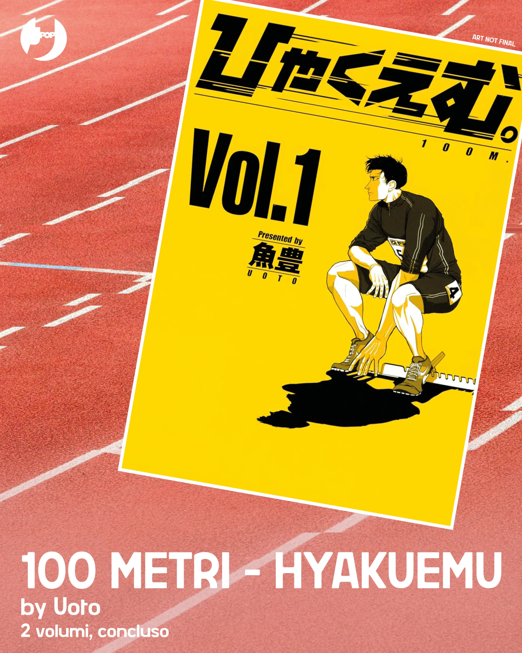 Cento metri è la distanza che separa un velocista dal traguardo. In quello spazio limitato, e nei pochi secondi che occorrono a calcare la pista, si decide del suo futuro agonistico. E non solo. In quei brevissimi momenti può condensarsi il significato di una vita. Dopo la grande attenzione che il lungometraggio 100 metri – Hyakuemu ha guadagnato a livello internazionale, J-POP Manga annuncia l’uscita in primavera del manga che ha ispirato l’adattamento animato! La serie è firmata da Uoto, autore già noto nel nostro Paese per Il movimento della Terra.