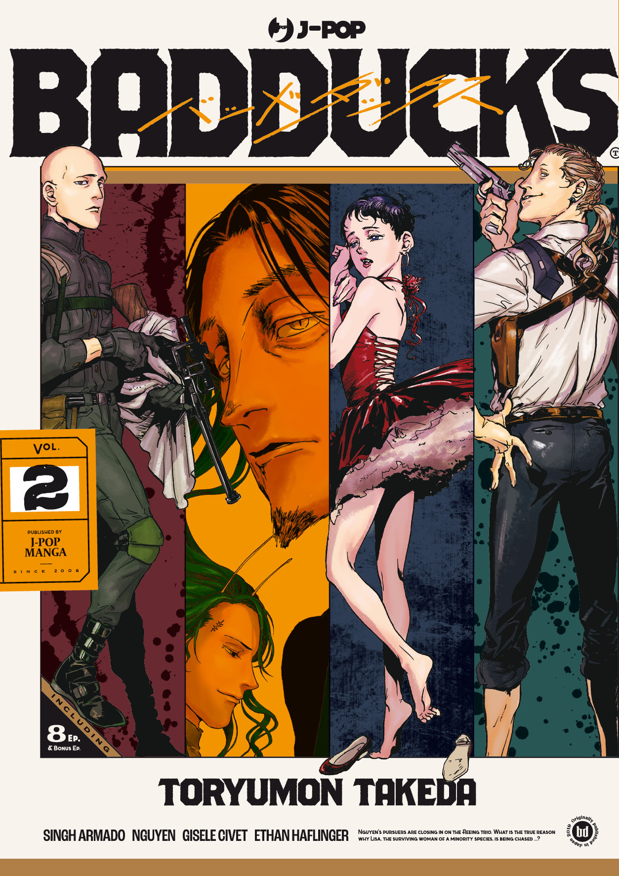 Influenzata nello stile dall’inconfondibile tratto di Katsuya Terada (Blood: The Last Vampire), Toryumon Takeda ha esordito con un manga di ampio respiro proprio dando alle stampe Badducks! Questa travolgente avventura in quattro volumi è la prima serie dell’autrice a essere tradotta in Italia e sarà disponibile completa all’interno di un curato ed elegante cofanetto da collezione. Una storia da leggere tutta d’un fiato dal talento di una nuova promettente firma del mondo manga!