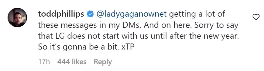 Per segnare l’inizio della produzione dell’imminente sequel di Joker, Phillips ha rilasciato una prima immagine di Arthur Fleck di Joaquin Phoenix su Instagram. Tuttavia, dopo che diversi fan avevano chiesto un accenno anche della Harley Quinn di Lady Gaga, Phillips si è lasciato andare nella sezione dei commenti del post.