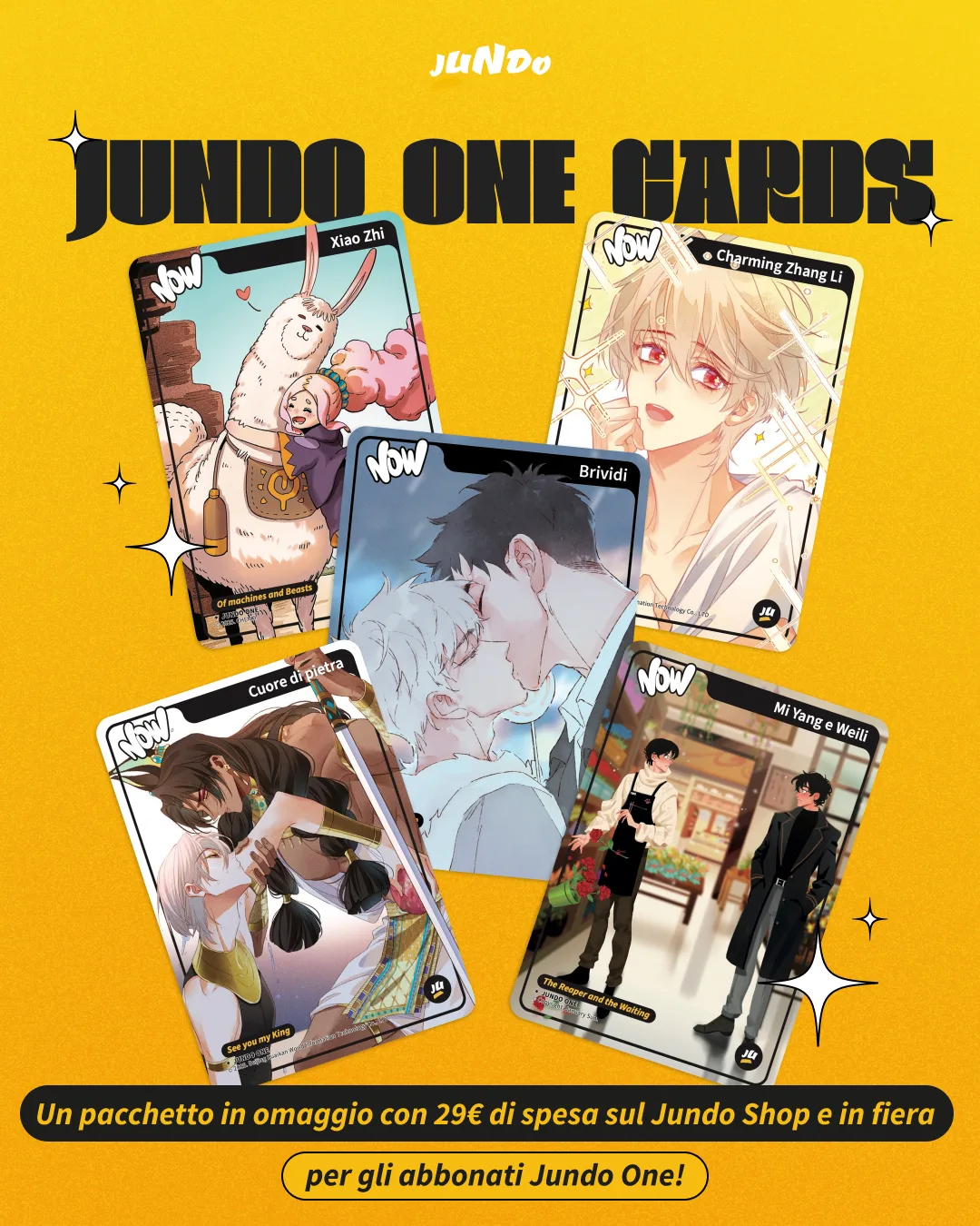 Sul Jundo Shop e in Fiera i nostri abbonati Jundo One che superano i 29€ di spesa otterranno con ogni ordine una Jundo One Card tratta dalle nostre opere più amate.