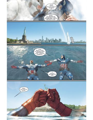 Capitan America #0 prende il via con Rogers e Wilson che cercano di sventare un tentativo di attacco da parte di Arnim Zola a New York City. Durante la battaglia, che si svolge a bordo di uno dei suoi razzi, fa irruzzione Wilson e possiamo vedere che insieme lui e Rogers gridano: “Sono Capitan America“. Dopo aver distrutto il razzo, Wilson e Rogers si schiantano in acqua proprio vicino alla Statua della Libertà. Mentre stanno galleggiando nell’acqua, Rogers dice: “Siamo entrambi solo… Capitan America“.