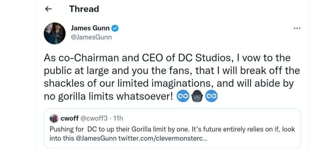 Molte sono le aspettative intorno al nuovo direttivo della DC comics: composto da Peter Safran e James Gunn, pronti forse a rivoluzionare la distinta concorrenza, imprimendogli nuove idee e quindi nuova linfa vitale. Tutto potrebbe tuttavia partire dai dei… Gorilla? Scoprimolo insieme!