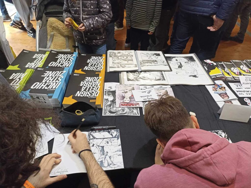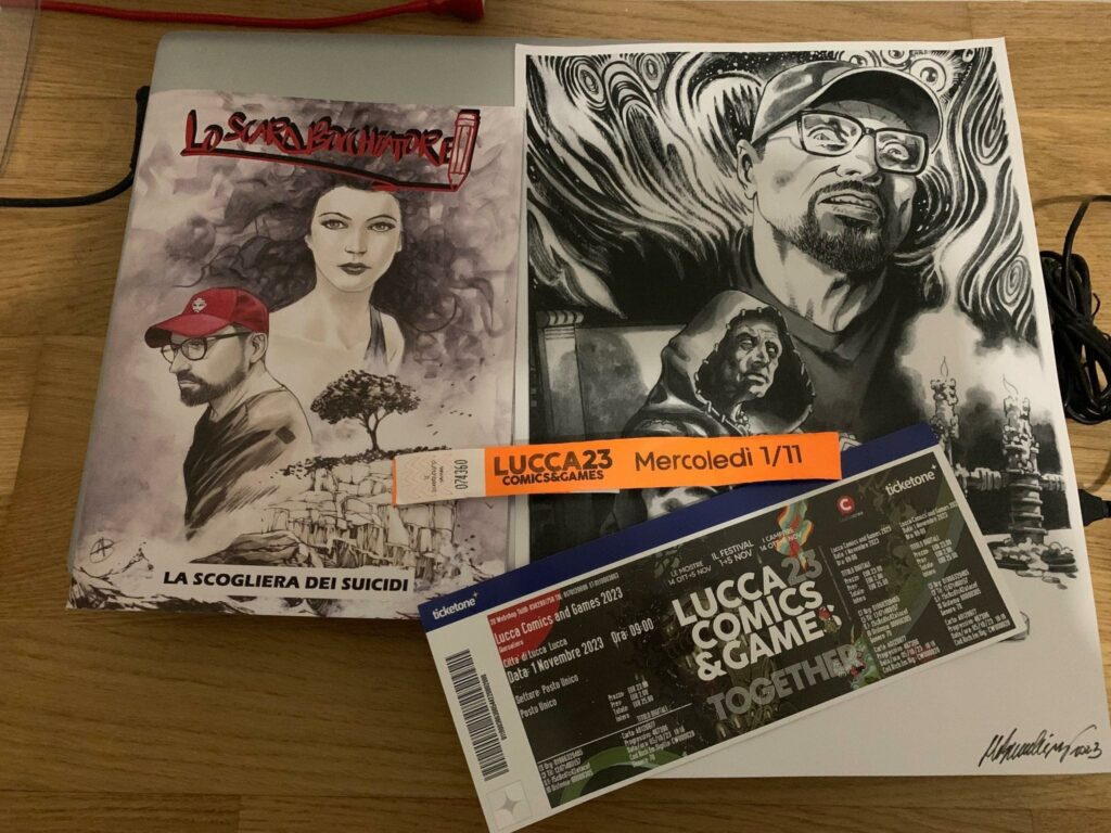 Per la realizzazione de La Scogliera dei Suicidi versione Lucca Comics ci siamo prodigati sperando che il nostro impegno, unito al lavoro di squadra e alla passione da tutti noi condivisa per la nona arte potessero essere gli ingredienti giusti per dare al pubblico qualcosa di diverso capace di ritagliarsi un posto tra l’imbarazzo della scelta che questa fiera offre. Siamo partiti con la speranza di poter ripagare con qualche soddisfazione e richiesta di sketch il team di autori che ci ha dato fiducia.