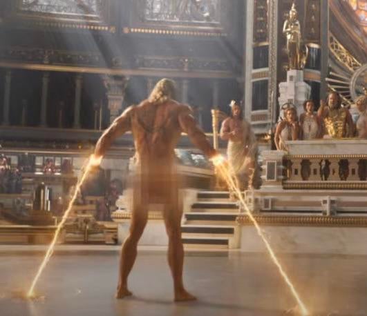 Quella nudità parziale, ovviamente, molto probabilmente ha a che fare con Thor (Chris Hemsworth) che viene svestito accidentalmente da Zeus (Russell Crowe). Un momento rivelato per la prima volta durante il teaser ufficiale del film. Hemsworth ha recentemente elogiato la performance di Crowe nel film, paragonandola al suo ruolo nel film premio Oscar Il Gladiatore.