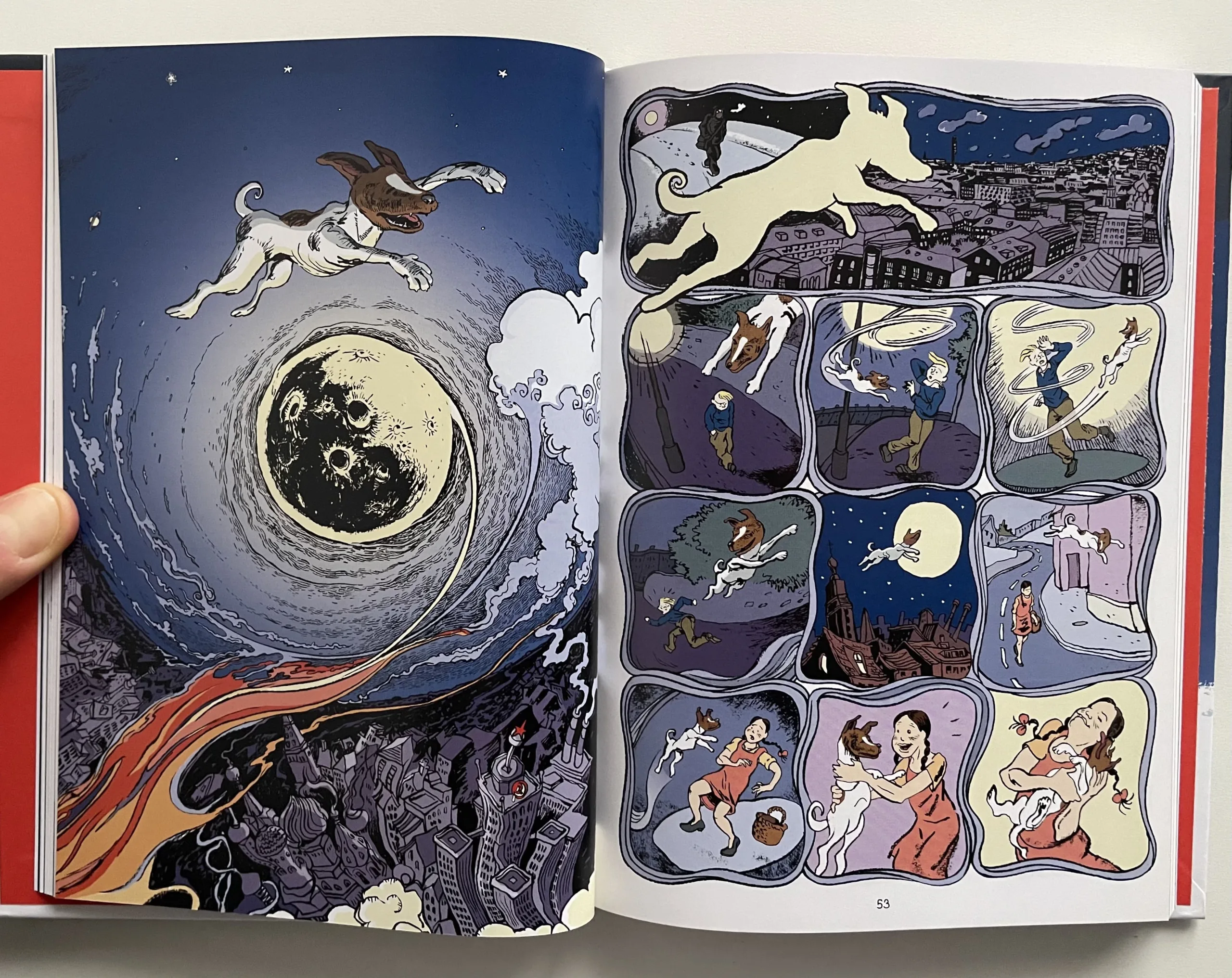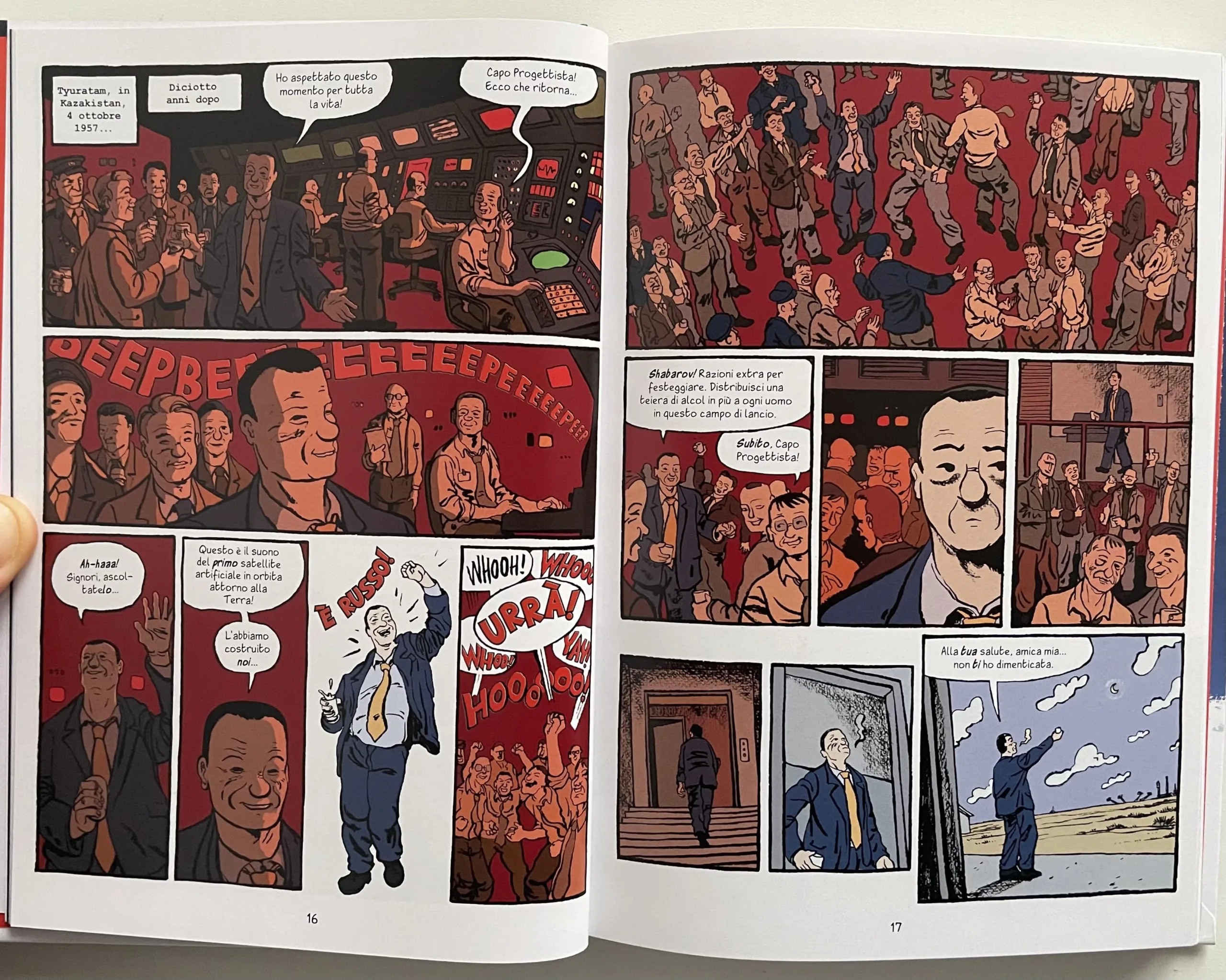 Le tavole sono ricche di vignette, spesso anche molto piccole per mettere in risalto alcuni aspetti della narrazione, come il volto dei personaggi, e la storia è scandita in maniera precisa, con l’indicazione del giorno in cui avviene ogni scena, quasi a voler fare di questo fumetto un documento storico dell’epoca. La documentazione precisa e dettagliata riportata nella bibliografia in fondo al volume, insieme alle parole dell’autore, è la dimostrazione del lavoro meticoloso svolto da Nick Abadzis per realizzare Laika. L’inserimento di qualche elemento di finzione, come il mescolare personaggi reali (es. Kolorev) ad altri ispirati a persone esistite (es. Yelena), ha permesso poi all’opera di risultare ancora più accessibile al vasto pubblico, facendo conoscere un evento storico senza annoiare e riuscendo a commuovere ed emozionare lettori e lettrici. Quella di Laika è la storia di una cagnolina che è stata una vittima inconsapevole della cupidigia umana ma anche pioniera del viaggio spaziale e di una nuova epoca, ed è sicuramente una vicenda che può insegnare tanto ancora oggi.