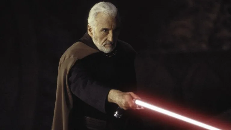 Il Conte Dooku, uno dei più raffinati spadaccini della sua generazione, si contraddistinse per una spada laser dal design particolare. Il manico, a differenza delle armi tradizionali, terminava con una curvatura che offriva diverse opzioni d’impugnatura durante il combattimento, mentre l’emettitore presentava una protuberanza ad uncino, conferendo all’arma un aspetto sinistro e quasi crudele. Elegante e minacciosa al tempo stesso, la spada laser di Dooku rispecchiava perfettamente il suo temperamento sofisticato e spietato.