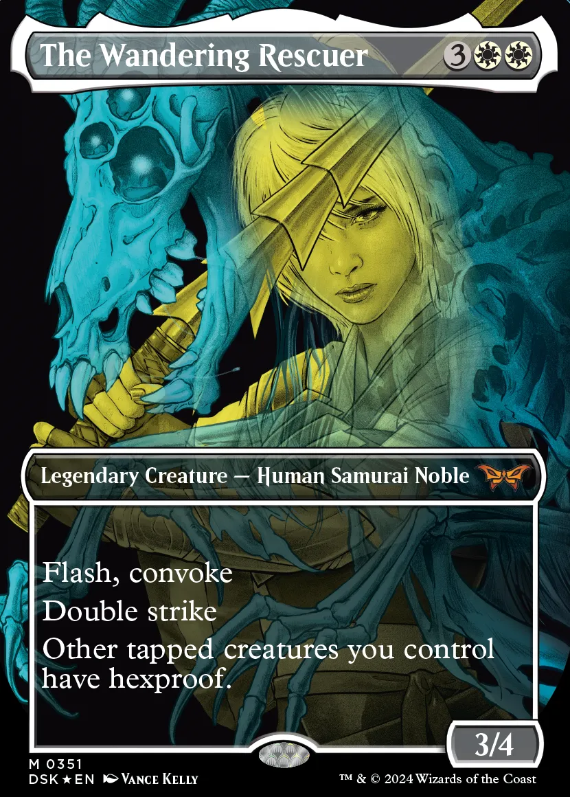 Presso lo stand di Magic: The Gathering a Lucca Comics & Games 2024, i visitatori potranno ricevere la carta in formato oversized “The Wandering Rescuer”, dal set Duskmourn, a fronte di una spesa minima di 30€ effettuata presso lo stand, fino ad esaurimento scorte.