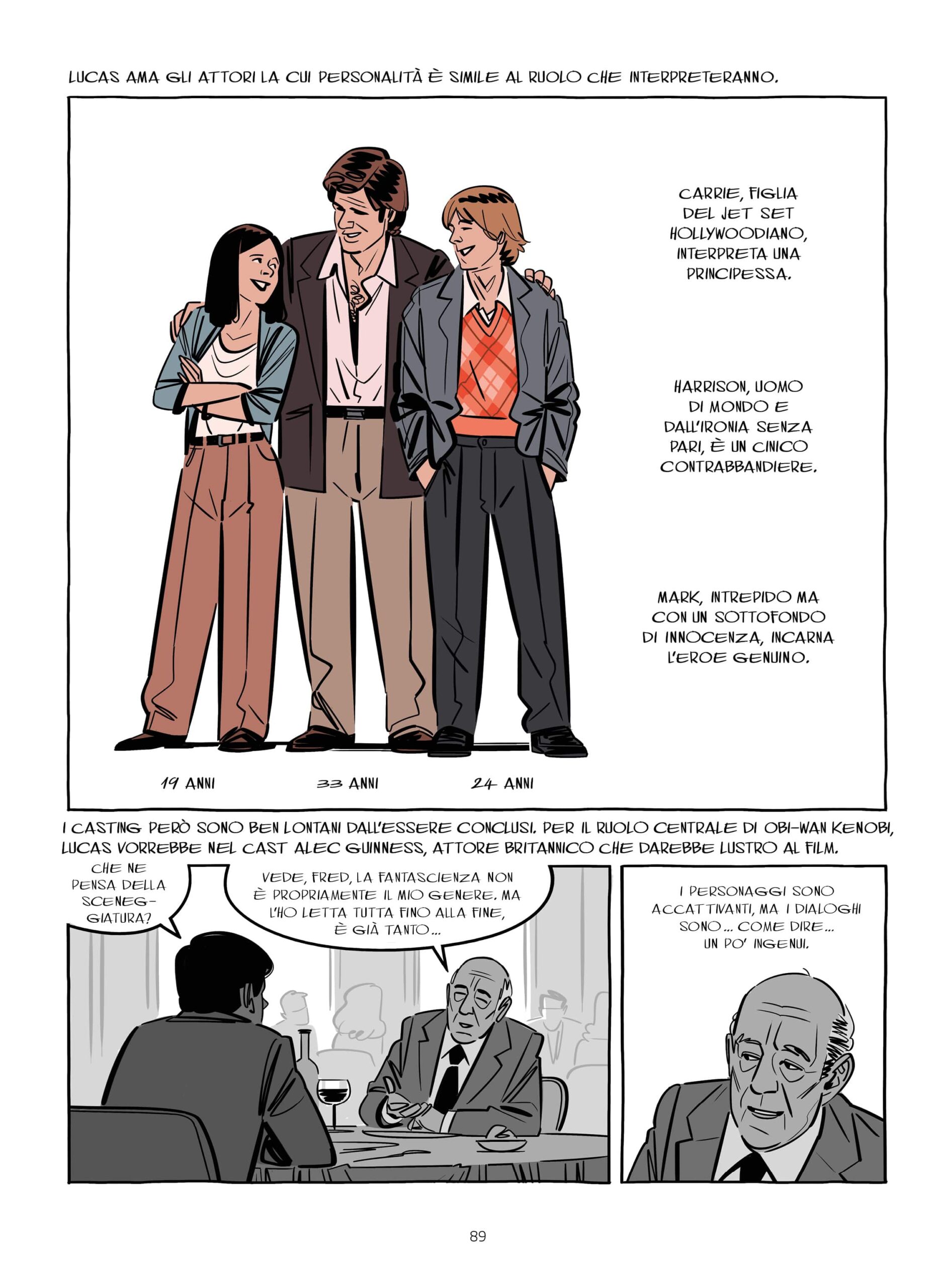 Tutta la seconda parte del volume è dedicata poi alla lavorazione del film. Dalla stesura della prima sceneggiatura fino all’uscita nelle sale, passando per la ricerca di tutte le figure coinvolte nella lavorazione e le lunghe riprese. Le guerre di Lucas racconta così in maniera dettagliata ma mai noiosa un periodo di quasi cinque anni che anche i più appassionati della saga potrebbero non conoscere. Un lasso temporale fatto di alti e bassi, in cui molte volte sembra che tutto stia per crollare. Siamo negli anni ’70, il cinema era molto diverso da quello che vediamo oggi. Realizzare un film come Star Wars ha significato mettere in campo tecniche e competenze innovative, ideate appositamente per questa produzione. Per Lucas, non doveva essere il solito film di fantascienza e questo richiedeva qualcosa di mai visto prima, a partire dalle riprese e dalla scenografia.