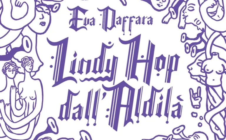 Una notte, delle grandi statue di angeli e creature deformi sono misteriosamente comparse in tutta Accabarì e nei dintorni della città. La popolazione locale ha imparato a conviverci, pur non sapendo nulla sulla loro natura. Da questa premessa prende il via Lindy Hop dall’aldilà, fumetto d’esordio e tesi di laurea di Eva Daffara, con il quale ha vinto la borsa di studio della Fondazione Tuono Pettinato nel 2014 e uscito ora per Eris Edizioni.