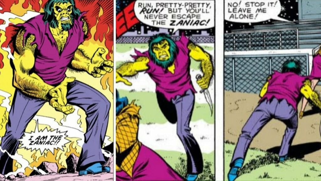 Creato da Doug Moench e Keith Pollard in Thor #319 del 1982, Zaniac è un’entità che lavora per conto di Dormammu, che arriva sulla Terra e inizia a possedere vari corpi umani alla fine del 1800. Il primo ospite di Zaniac finisce per essere nientemeno che Tom Malverne, che diventerà il famigerato serial killer Jack lo Squartatore.
