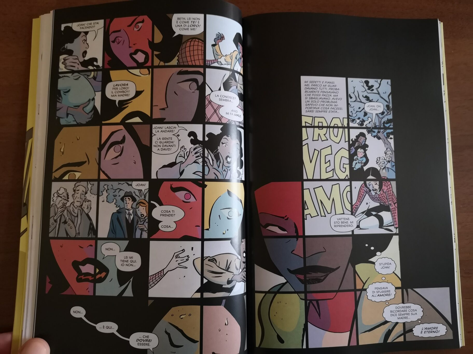 Love Everlasting si rivela nuovamente una seria romantica, dove l’amore è al centro della narrazione ammantata di mistero. Narrazione esaltata dalle tavole di Elsa Charretier che sorprende il lettore con alcune pagine mosaico, capaci di mostrarci qualcosa di diverso e intenso. Queste tavole ci mostrano degli eventi che ci danno un senso della mente di Joan in quel momento e ricorrono quando la ragazza perde il controllo.