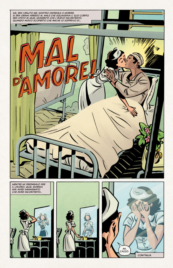 Tom King è il poliedrico autore responsabile della sceneggiatura di Love Everlasting. L’ex agente della CIA dimostra, ancora una volta, tutto il suo talento come scrittore dopo i grandi successi quali Mister Miracle, Visione, e Batman. In quest’opera unisce i temi dell’amore, sempre presenti nelle sue opere, con una narrativa pulp e i viaggi nel tempo. King è bravissimo nel farci cogliere diverse sfumature di Joan, inoltre, riesce a sviluppare i sentimenti, vero motore dell’opera, in pochissime pagine. La serie cult Quantum Leap ha sicuramente ispirato i viaggi di Joan, ma questi sono completamente diversi per la loro natura.