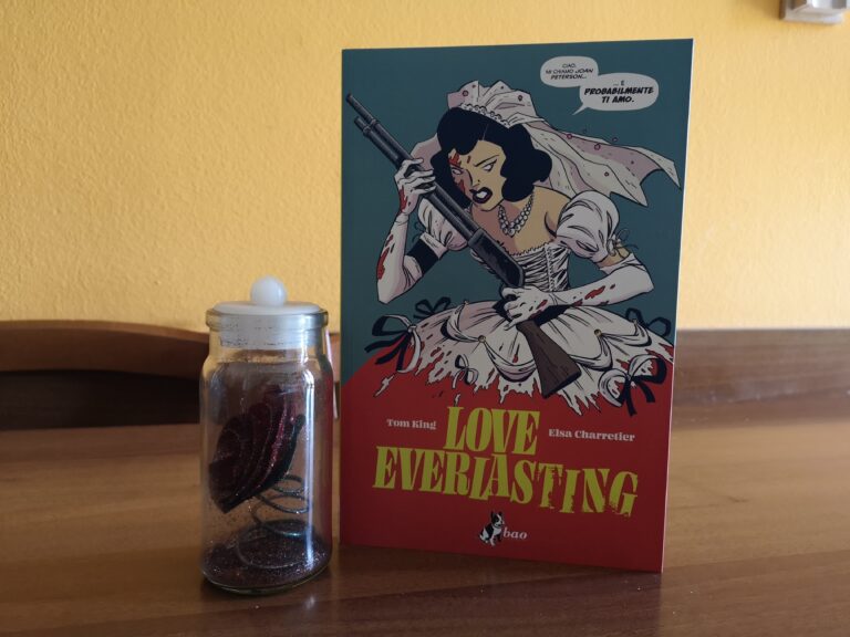 L’amore è un tema che ha ricevuto molteplici interpretazioni nel corso del tempo. Felicità e tragedia sembrano essere gli unici possibili risultati di questo sentimento decantato dall’inizio dei tempi. Il mondo del fumetto non è eccezione, basti pensare a titoli come Saga o Il blu è un colore caldo, ma è difficile trovare qualcosa che sappia stupire e accendere la curiosità dei lettori. Questo non è il caso di Love Everlasting, la nuova opera fumettistica di Tom King, disegnata da Elsa Charretier, e pubblicata in Italia da BAO Publishing, che ringraziamo per averci fornito il volume.