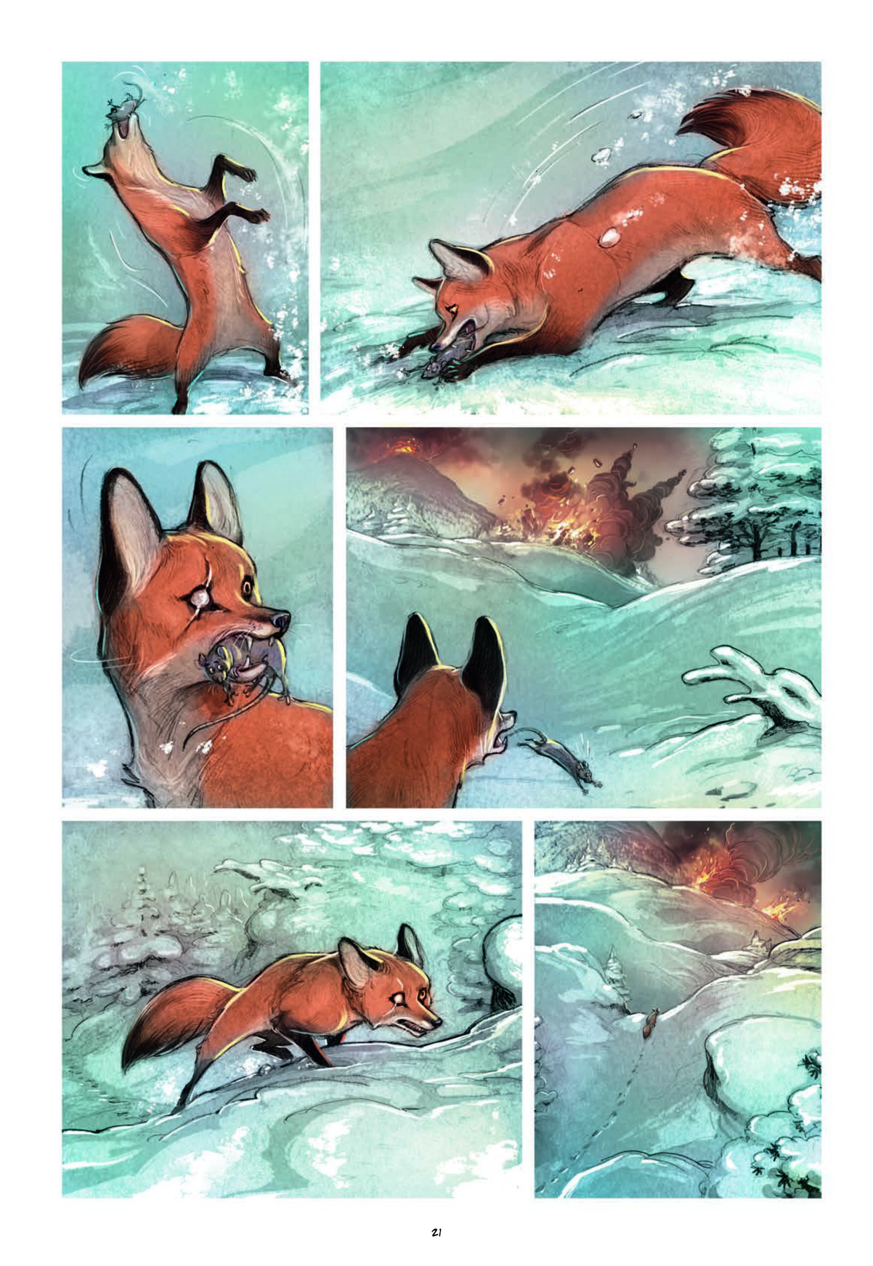 Amo le storie senza dialoghi. Ma qui l’autore, Frédéric Brrémaud, riesce a creare un mondo emozionante e una storia sincera e divertente. È come se il regno animale fosse un po’ in crisi, soprattutto quando vediamo come gli orsi polari e i grizzly si combattono tra loro. Ovviamente le possibilità che ciò accada naturalmente sono scarse, ma è interessante vederlo qui in questo “paradosso” tra lo spazio e il tempo. Il mondo che ha creato è interessante e invoglia il lettore ad esplorarlo.