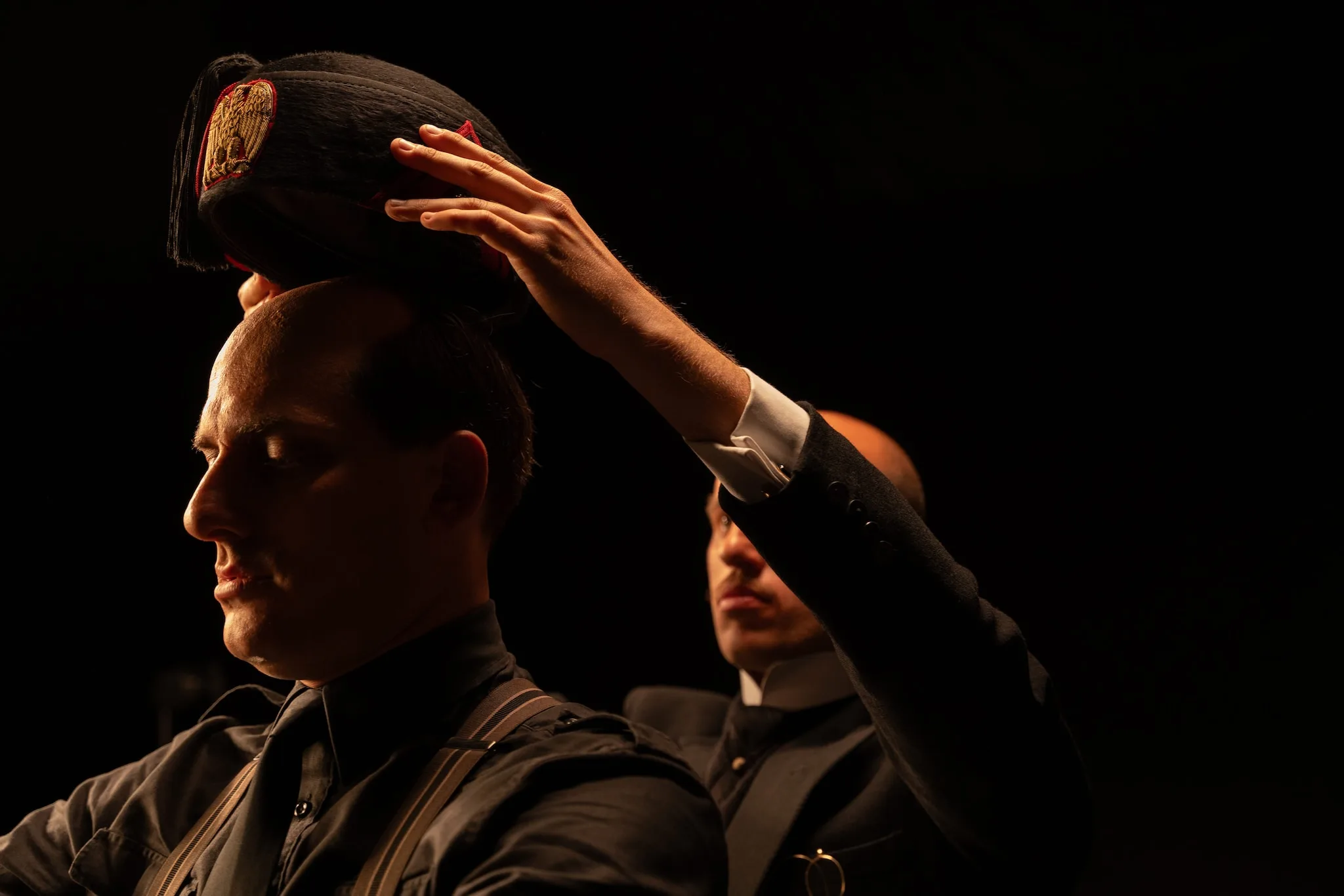 Luca Marinelli è stato chiamato da Joe Wright a interpretare Benito Mussolini e dar prova di una grandissima interpretazione. Romano di nascita, ha saputo dar voce a un personaggio storico che ha studiato nel profondo nella dialettica, nella cadenza, nella cinetica.