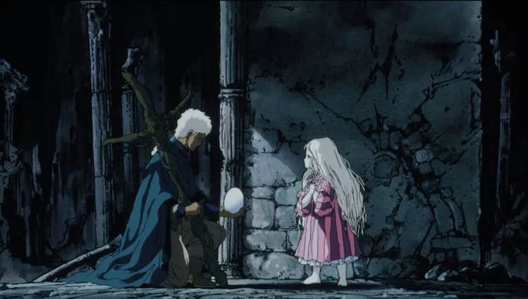 Ambientato in un mondo deserto e post-apocalittico, dall’atmosfera a metà tra il gotico e il cyberpunk, L’Uovo dell’Angelo (titolo originale: Tenshi no tamago) è un film dai toni cupi, silenziosi, quasi privo di dialoghi, dalla colonna sonora aulica e solenne, misteriosa ed elegante.
