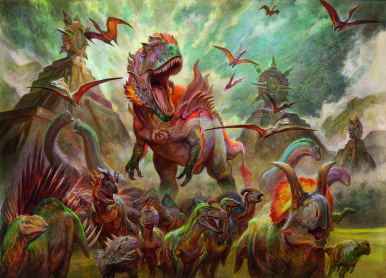 La prossima collezione Mondi Altrove porta con sé Jurassic World, inserendo nel mondo di Magic l’eccitazione e le emozioni di questo franchise di successo. Con personaggi carismatici, dinosauri intelligenti e luoghi fantastici, queste carte delizieranno sia gli appassionati di Ixalan sia quelli di Jurassic World e potranno essere trovate occasionalmente nelle buste dell’espansione, in ogni Collector Booster e in alcuni drop di Secret Lair. Fai tuo un pezzetto del parco, con un totale di 26 carte in collaborazione tra cui Ellie e Alan, Ian Malcolm e il classico tirannosauro.
