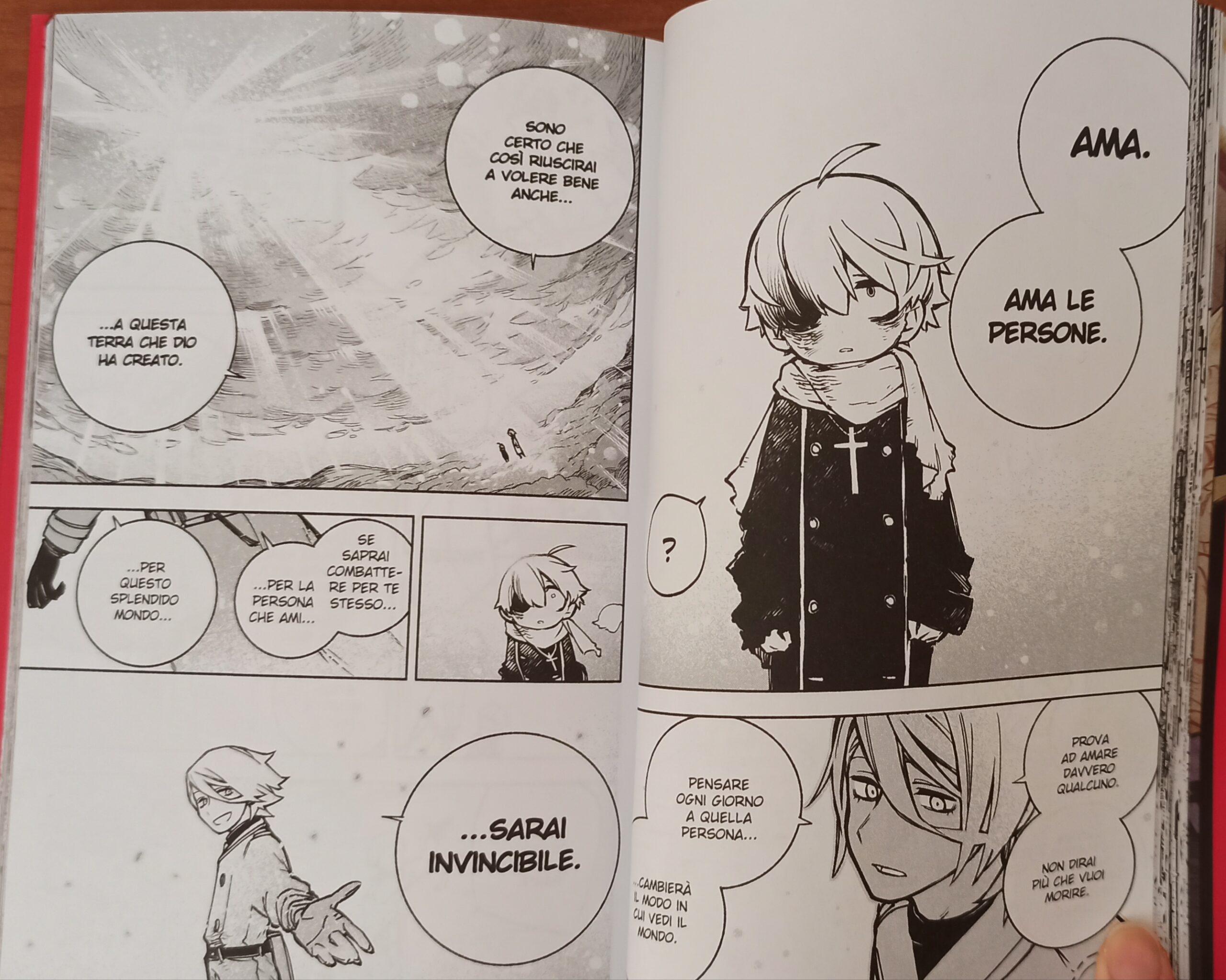 Il giovane esorcista dal destino praticamente segnato, è un protagonista dai sogni praticamente molto “semplici” all’apparenza, e tormentato dal senso del dovere al tempo stesso. Se sacrificare la sua vita per l’umanità è il suo compito, l’unica cosa che rappresenta per lui un ostacolo è “l’amore”, proprio perché lui desidera vivere, come gli ha insegnato il suo vecchio maestro; e seguendo questa filosofia di vita, per cui vivere vuol dire amare, la storia prende un ritmo meno lento e più acuto, lasciandosi alle spalle la flemma che affligge i primi capitoli. Seppure nel corso del volume continuano ad essere presenti dei passaggi indolenti, i vari dettagli che in questo genere di manga è raro trovare, spingono a proseguire nella lettura, che di tanto in tanto è capace anche di dare uno sprint al lettore grazie a interessanti e rare informazioni, momenti di leggerezza e genuina risata, e a dei disegni gradevoli che fanno un buon match allo stile della sceneggiatura.