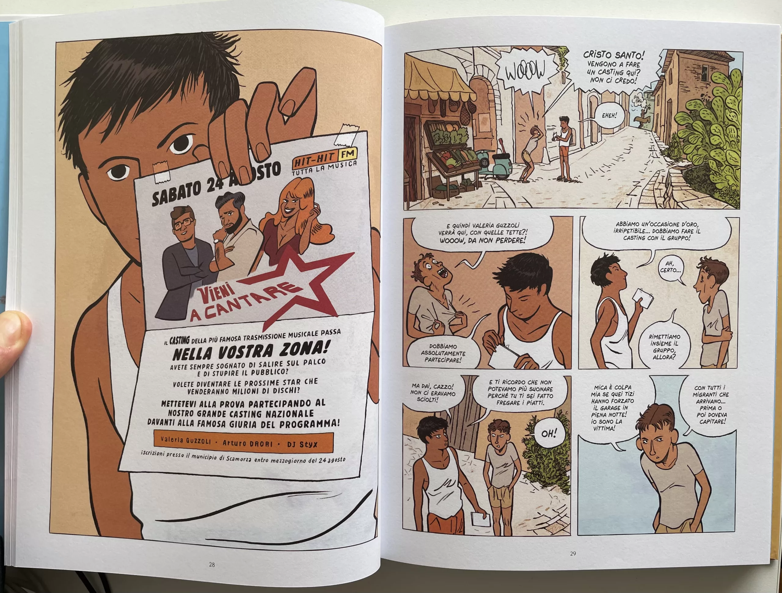 Alfred dipinge un paesaggio realistico e al tempo stesso molto poetico, al quale dedica spesso delle doppie tavole mute che fanno come da raccordo tra le diverse scene della storia. Mimmo e i suoi amici provano a realizzare un sogno, ma sembra che il paesino non voglia lasciarli partire e cerchi di metter loro i bastoni tra le ruote. Pur essendo un luogo non ben definito, appare reale anche per le persone che lo abitano, come l’immancabile gruppo di bulli o quello che viene considerato il “pazzo” del villaggio, che molti sbeffeggiano senza neanche chiedersi cosa lo abbia portato a essere così.