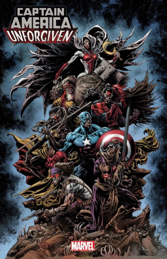 Scritto da Tim Seeley e disegnato da Sid Kotian, Capitan America: Unforgiven #1 è il capitolo finale di una serie di one-shot incentrati sulla squadra di vampiri Forgiven, e i dettagli del numero sono stati rivelati dalle solicitations di aprile 2023 della Marvel Comics. Composta principalmente da succhiasangue disposti a combattere dalla parte del bene piuttosto che da quella del male, nel numero i ranghi dei Forgiven sembrano aver perso la loro strada eroica, e toccherà a Cap raddrizzarli prima che “cedano alla loro natura più oscura”.