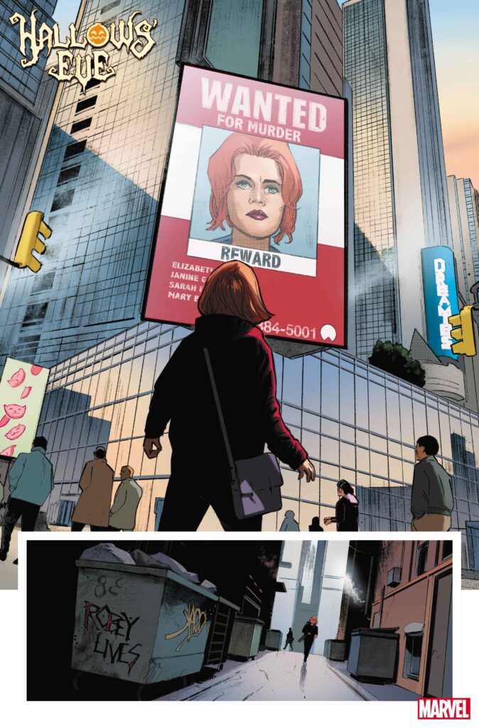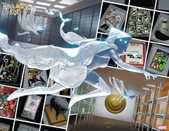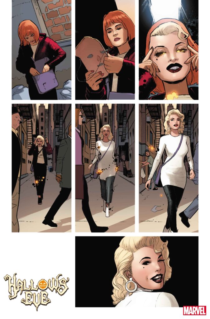 Hallows’ Eve è una nuova miniserie di cinque numeri scritta da Erica Schultz e disegnata da Michael Dowling che ha come protagonista Janine Godbe/Hallows’ Eve, una nuova nemica di Spider-Man che ha avuto un ruolo importante nell’evento Dark Web della Marvel. Un’anteprima del primo numero della serie vede Janine ricercata per omicidio e che usa i suoi poteri, poteri che variano a seconda della maschera di Halloween che indossa, per travestirsi da Marilyn Monroe e poi introdursi in un caveau. All’interno del caveau si trovano la copertina di Amazing Fantasy #15 del 1962 (di Jack Kirby e Steve Ditko), un’action figure di Hulk e una maschera di Iron Man del primo modello.