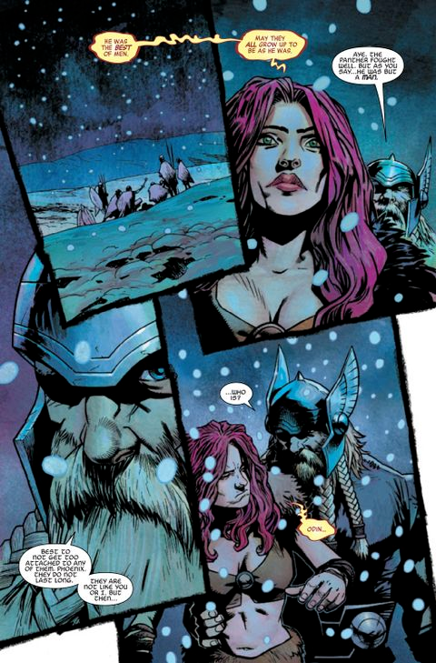 Le origini di Thor sono diventate di recente un argomento importante nelle pagine dell’albo principale dei Vendicatori della Marvel. Nel numero 43 di quella serie, Thor ha appreso che Lady Fenice era in realtà sua madre, non Gea, la Dea della Terra, come aveva pensato in precedenza. Da allora ha mostrato una certa capacità di manipolare i poteri della Forza Fenice.