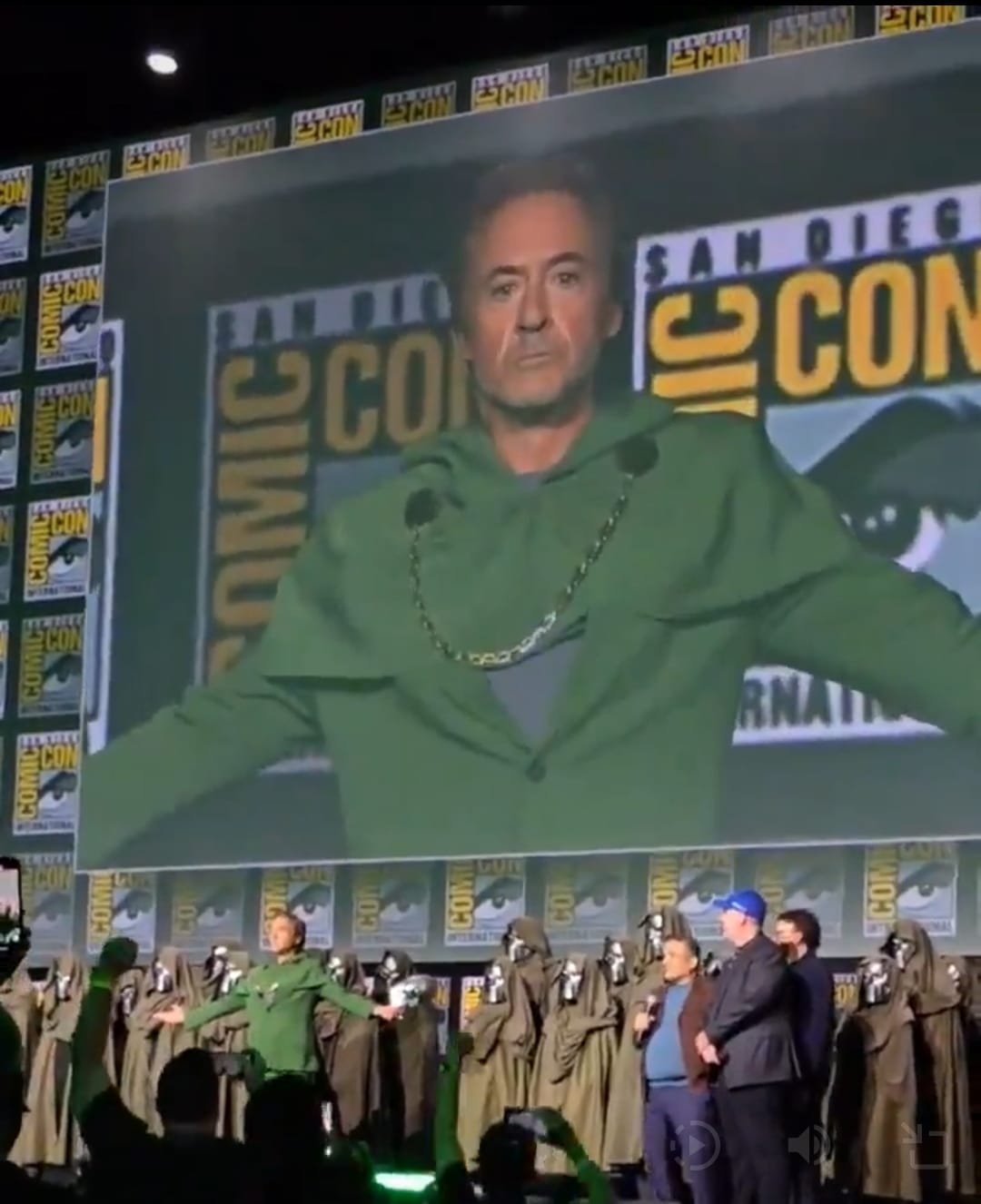 Robert Downey Jr. è ancora l’uomo della Marvel con la maschera di ferro, ma non nei panni di Tony Stark/Iron Man. “Nuova maschera, stesso compito”, ha detto Downey durante la presentazione dei Marvel Studios al Comic-Con di San Diego nella Hall H, dove la star di Iron Man si è scioccamente smascherata sul palco come il Dottor Destino del MCU.