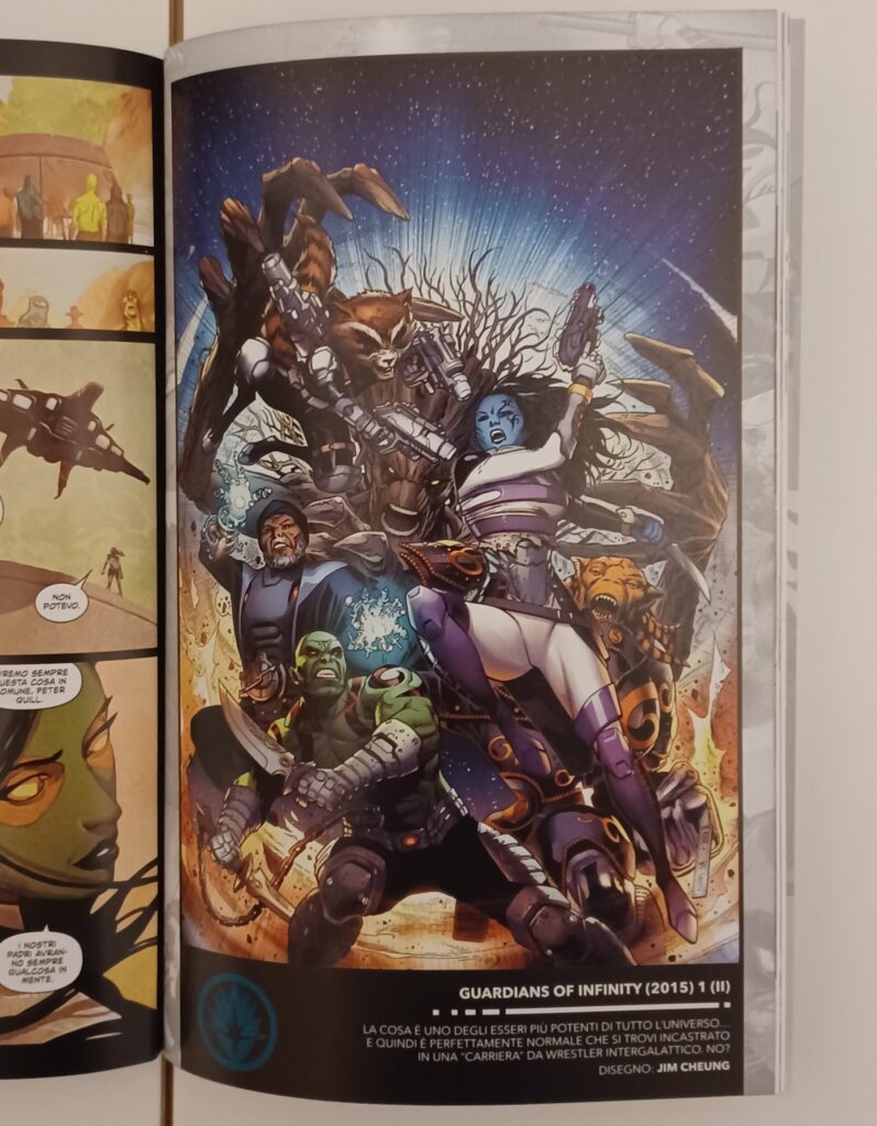Le migliori storie dei Guardiani della Galassia in un solo volume. Un viaggio infinito tra le pieghe dell’universo… rigorosamente sempre in fuga. La storia personale delle origini di ogni Guardiano. Con la partecipazione straordinaria della Cosa in versione wrestling. la serie di volumetti “Marvel-Verse” edita da Panini Comics questa volta si concentra sulla squadra di Peter Quill.