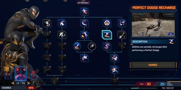 Ricarica Schivata perfetta è la prossima abilità da prendere nell’albero delle abilità condivise.