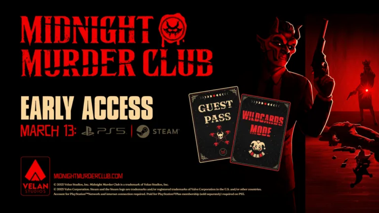 Midnight Murder Club, il party game creato dalle menti di Velan Studios, è ora disponibile in early access su PlayStation 5 e PC al prezzo di €19,99, includendo anche il cross-play e il cross-progression per i giocatori di entrambe le piattaforme, e la possibilità di ospitare sessioni di gioco. Per rendere l’esperienza ancora più divertente, Velan Studios ha anche reso disponibile gratuitamente la “Midnight Murder Club Guest Pass Edition“. Fino a cinque possessori della Guest Pass Edition possono unirsi alle partite ospitate da un giocatore che ha acquistato il gioco.