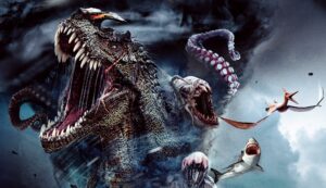 In pratica, pensate a Sharknado, ma al posto degli squali ci sono megalodonti, calamari giganti, kraken, ragni mangia-uomini e altro ancora. Il tutto scagliato contro una città costiera da trombe d’acqua a una velocità di 300 miglia all’ora.