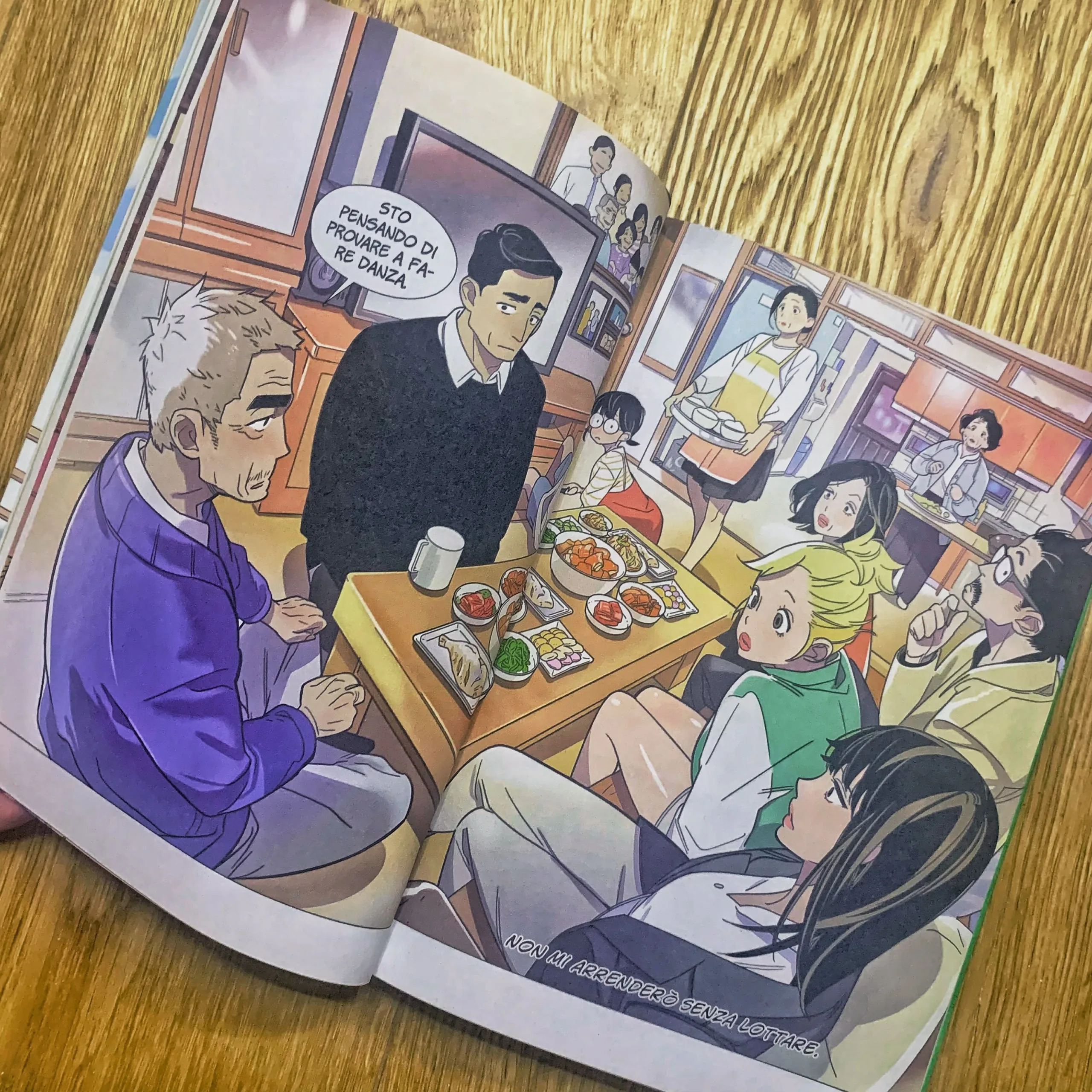 Anche il disegno riesce a trasmettere tutto, il divertimento, la drammaticità, i sentimenti dei personaggi e in particolare la danza e i suoi movimenti che bucano le pagine ed esprimono tutta la sua potenza e magnificenza. L’ambientazione è tipicamente coreana e forse alcune situazioni raccontate potrebbero un pochino bloccare lettori meno avvezzi a manhwa e drama. Dall’altra sono presenti piccole note per aiutare la comprensione. Indubbiamente però al centro di Navillera ci sono temi e questioni universali e la danza. Lei diventa un vero e proprio collante per unire persone e generazioni, creando un legame che dalla pagina arriva dritto al cuore del lettore che non può fare a meno di tifare affinchè i suoi personaggi possano riuscire nei loro sogni. E nel mentre è felice di seguire il loro percorso professionale e umano.