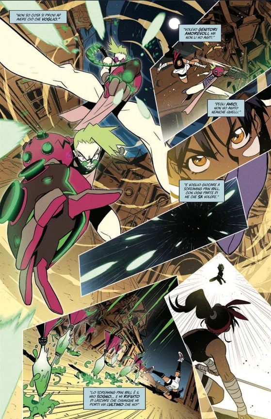 Trini è chiaramente un’esasperazione di classici e regole che tutti conosciamo. La serie si basa su queste regole che fanno ormai parte della nostra cultura, specialmente con la diffusione del mercato di anime e manga giapponese. Con Josie abbiamo lavorato sull’esasperare queste dinamiche, quindi Trini è la classica protagonista di uno spokon o di uno shonen, ma al massimo! È super determinata e le sue reazioni sono super estreme, quindi tanta gioia quanta tristezza. Anche tutto lo scenario e gli altri personaggi sono intrisi di queste dinamiche. Abbiamo cercato di esasperarle così tanto da far capire che ci stiamo giocando, proprio perché siamo saturi, positivamente, di questo tipo di intrattenimento e ormai diamo quasi per scontato che possano succedere certe dinamiche. Volevamo farle succedere in modo talmente veloce e dinamico da farle diventare qualcosa di strano. Questa è stata la meccanica per far girare tutta la serie, sia personaggi, che situazioni e paesaggi.