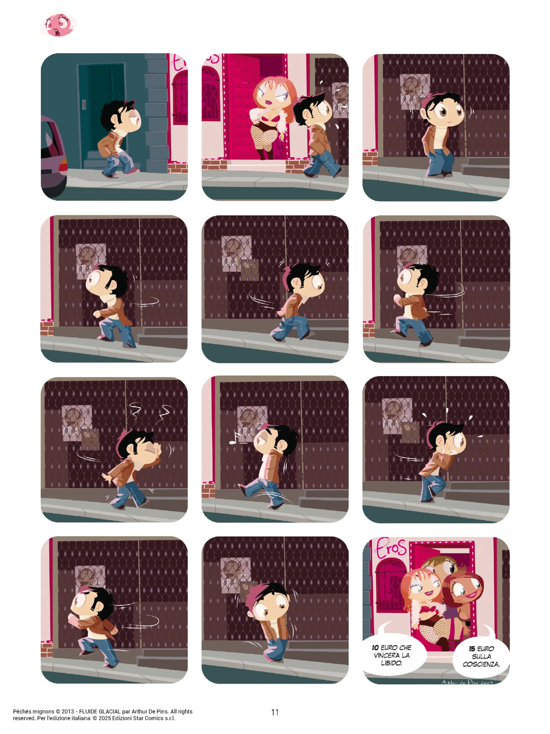 All’inizio è stato su suggerimento dell’editore di Max Magazine perché lavoravo già con loro e facevo questi piccoli personaggi rotondi, con fianchi larghi, testa grande e occhi grandi. Quindi lui mi ha chiesto: “Perché non crei un fumetto con questi personaggi?” e io “Perché no?”. Così ho iniziato a lavorarci. E per la cronaca è stata una sua idea quella di chiamare il personaggio principale Arthur e questo è stato un grande equivoco perché non si tratta di me, solo un pochino, qualche volta… Così è iniziato e dopo che Max Magazine ha chiuso, ho iniziato a pubblicare su Fluide Glacial, un magazine molto famoso in Francia specializzato in fumetti umoristici. Questo è il motivo per cui il primo volume ha qualche difetto in termini di umorismo. Quando l’ho pubblicato non sapevo che sarebbe diventato un libro, usciva solo su rivista. Non ero a conoscenza di quello che sarebbe diventato, chi lo avrebbe letto. Quando a partire dal secondo volume ho iniziato a pubblicare con Fluide Glacial, ho voluto migliorare, pensare di più alle mie battute, lavorarci di più.