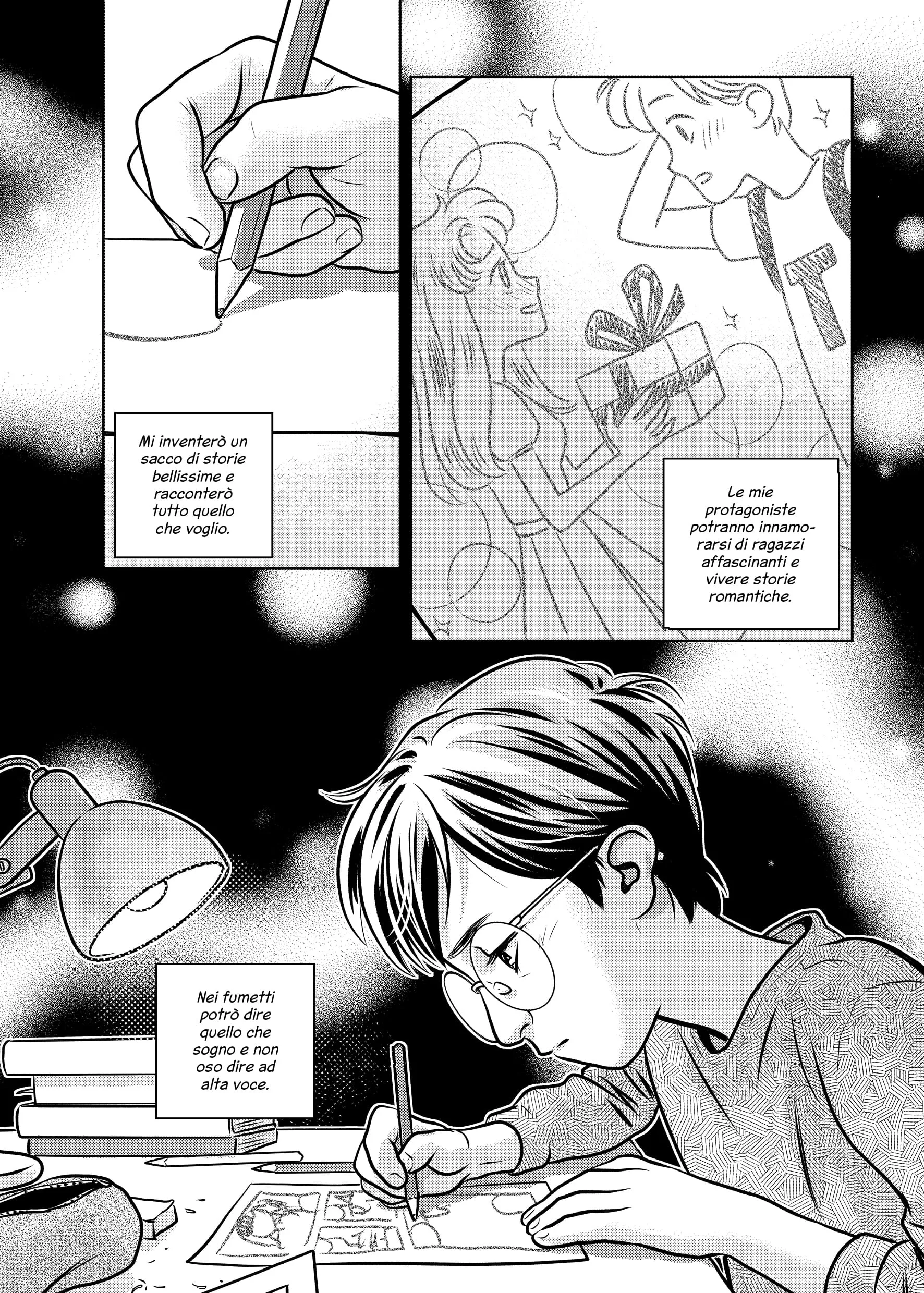 L’input è arrivato da un percorso di psicoterapia. L’intenzione iniziale era di scrivere una vera e propria autobiografia come se fosse un manga, ma mi sono allontanato in fretta da quest’idea. Fare un’autobiografia alla mia età mi sembrava una cosa un po’ pretenziosa e per di più avrei dovuto raccontare di persone realmente esistenti oltre a me stesso, il che avrebbe potuto essere irrispettoso. Sarei finito con l’edulcorare molte delle cose che volevo raccontare, quindi ho capito che l’auto-fiction era la strada giusta, quella che mi avrebbe consentito di essere spudorato mantenendo la giusta distanza dai fatti e dalle persone reali. Per citare il bellissimo saggio di Francesco Piccolo La bella confusione, quello che racconto in TLVCSDG “è vero, nel senso più profondo; non: è successo esattamente così; ma: racconta una verità profonda”.