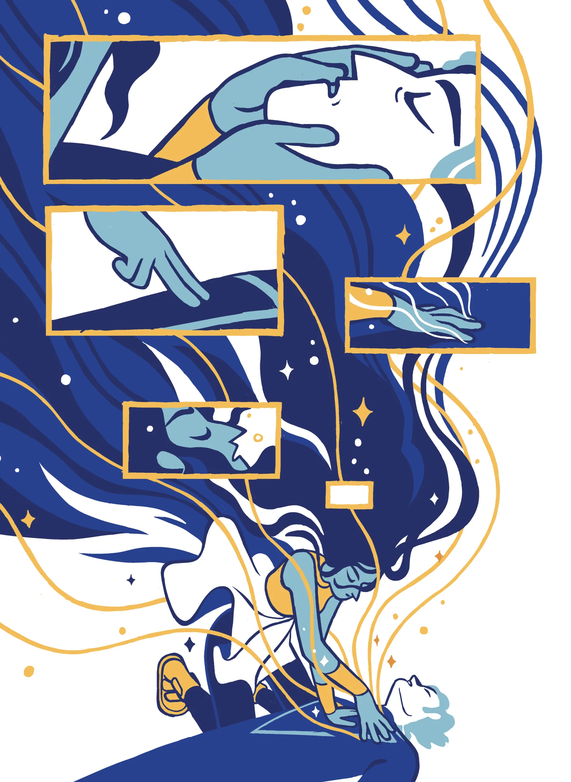 In Medea si nota a colpo d’occhio una forte sperimentazione artistica, sia a livello di costruzione delle tavole, che non seguono mai una gabbia precisa, che in merito ai colori, con una predominanza del blu. Come hai sviluppato la palette della storia e su cosa hai lavorato in particolare per raggiungere questo risultato?
