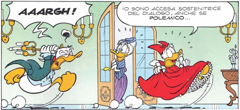 Anche se abbiamo fatto le storie in periodi diversi non c’è mai stata nessuna fatica a riprendere quei personaggi. Li abbiamo ritrovati non proprio come li abbiamo lasciati perché loro hanno continuato la loro vita; quindi erano un po’ diversi e questa cosa mi piace tantissimo. Credo e spero che faremo ancora altre storie in questo mondo perché mi piace molto e sento che mentre noi stiamo parlando Re Topolino sta litigando con la muffa canterina (ride).