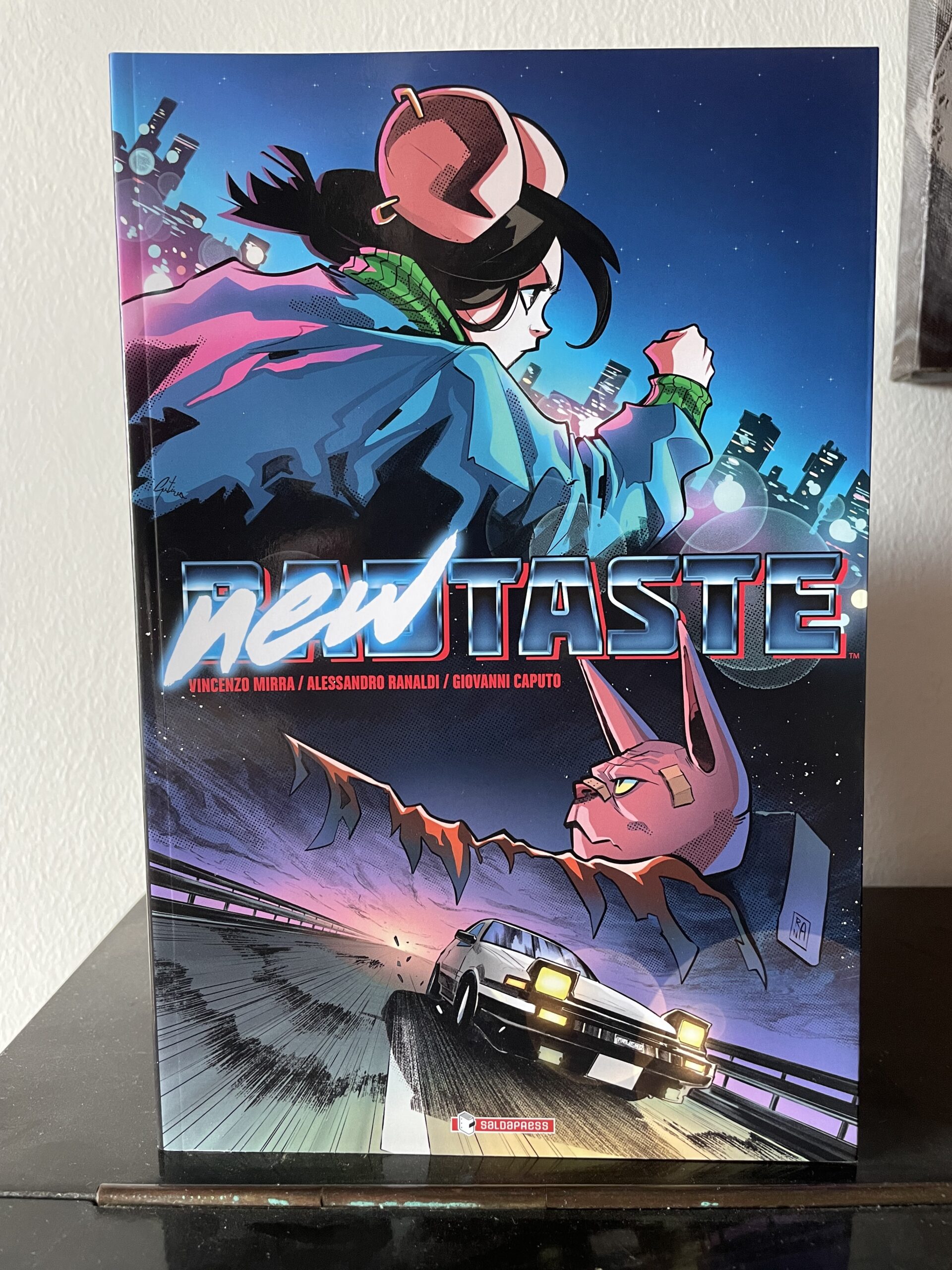 La fuga rocambolesca di una ragazza e del pilota che la accompagna con la sua auto per le strade di una città pericolosa e piena di insidie. Questa è la trama attorno alla quale si sviluppa New Taste, fumetto pubblicato da SaldaPress e realizzato da un team tutto italiano: Vincenzo Mirra ai testi, Alessandro Ranaldi ai disegni e Giovanni Caputo ai colori. Una storia urban action dalle atmosfere retrowave o synthwave con uno stile grafico davvero accattivante e che vorrete leggere tutta d’un fiato.