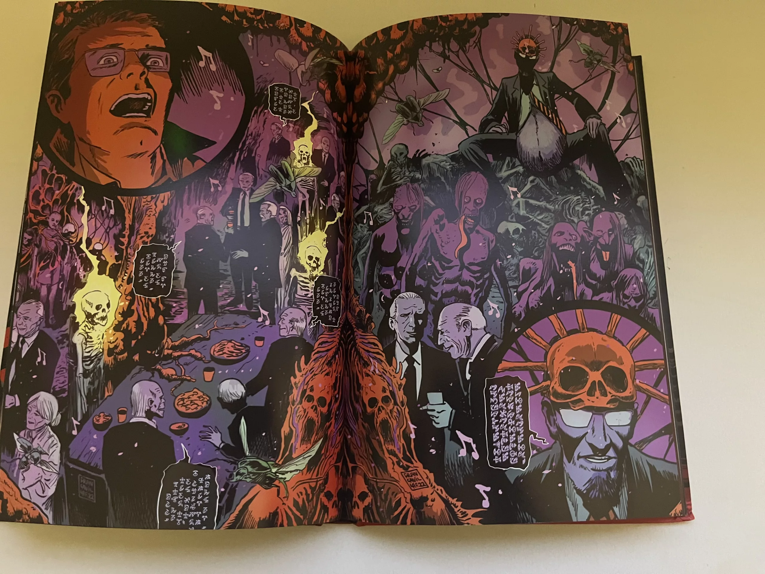 Una storia avvincente che rapisce il lettore, pagina dopo pagina i nodi si fanno via via più fitti, le prospettive si ribaltano e le idee che si erano formate prima vengono completamente ribaltate. Non manca una componente splatter, ma l’orrore è dettato soprattutto da quel senso di sospetto e paura, legato agli uomini in nero che possono manipolare da dietro i fili delle realtà e della verità. Snyder gioca sulla linea sottile delle teorie del complotto, introducendo però anche un elemento “fantasy” orrorifico.