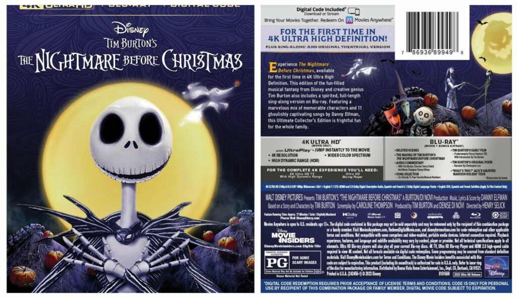 L’amato Nightmare Before Christmas di Tim Burton compie quest’anno 30 anni e arriverà finalmente in 4K Blu-ray/Digital il 22 agosto. L’uscita è definita “Ultimate Collector’s Edition” con i seguenti contenuti bonus: